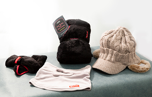 寒い冬も快適に過ごしていただくために、あたたかい素材を使用したフェイスカバーやマスク、耳当て付きニット帽などをご用意。もちろん、寒さ対策に力を入れすぎて息がしにくいなんてことはありません。冷たい外気からも、冬の間も降り注ぐ紫外線からも、あなたを守ります。